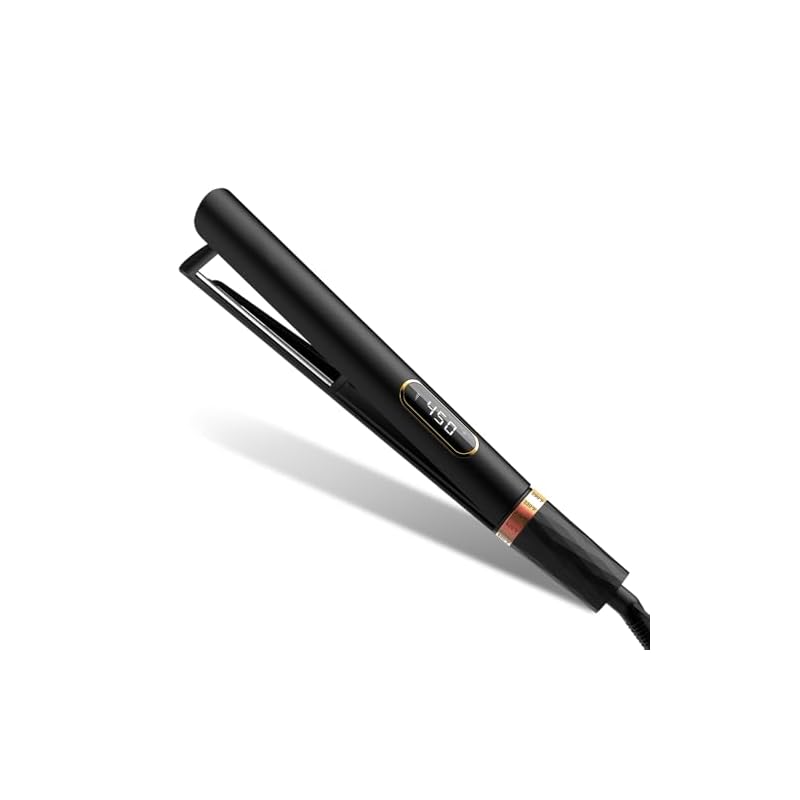 Nicebay Plancha plana Ttanium de 1 pulgada, alisador y rizador de pelo de calentamiento rápido, con 5 ajustes de temperatura, tecnología de iones negativos, apto para viajes, diseño suave de salón