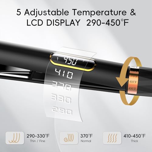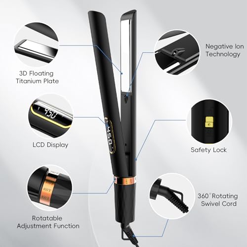 Especificaciones: Nicebay Plancha plana Ttanium de 1 pulgada, alisador y rizador de pelo de calentamiento rápido, con 5 ajustes de temperatura, tecnología de iones negativos, apto para viajes, diseño suave de salón