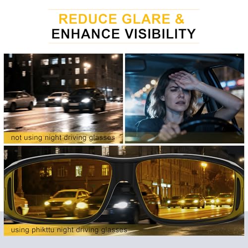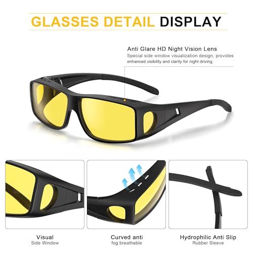 Night Driving Glasses – HD Anti Glare Wrap Around Fit Over Glasses for Men & Women Enhance Night Vision & Driving