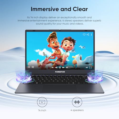 Deleite visual y audio: disfrute de una pantalla Full HD 1080P de 14 pulgadas que da vida a su contenido con una claridad nítida y colores vibrantes. Complementando la experiencia visual hay 4 altavoces estéreo que ofrecen un audio rico y envolvente, lo que hace que este portátil sea ideal tanto para el trabajo como para el entretenimiento.