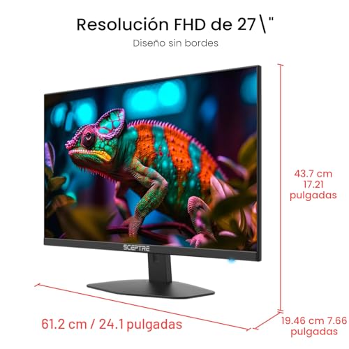 ¡Nuevo! Sceptre – Monitor para juegos de 27 pulgadas 100 Hz 1 ms DisplayPort HDMI x2 100% sRGB AMD FreeSync, altavoces integrados, cuidado de los ojos, sin marco, negro 2025 (Serie E275W-FW100T)