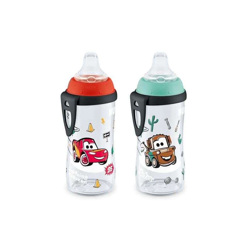 Especificaciones: NUK Vaso activo para sorber, 10 onzas, paquete de 2, Disney’s Cars, Lightning McQueen, sin BPA, a prueba de derrames, taza de transición