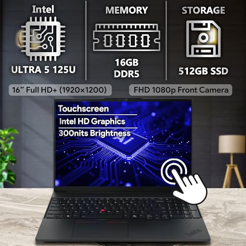 Oemgenuine Lenovo ThinkPad E16 Gen 2, pantalla táctil WUXGA de 16 pulgadas, Intel Ultra 5-125U, 16 GB DDR5 RAM, 512 GB NVMe, FP, KB retroiluminado, WiFi 6E + BT, RJ-45, cámara web FHD, W11P, portátil