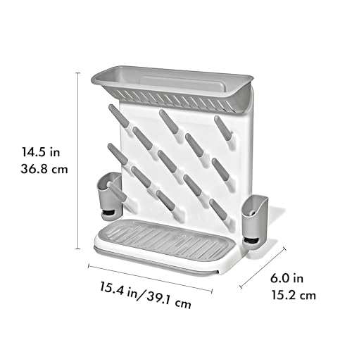 OXO Tot Rejilla de secado expandible, estante de secado que ahorra espacio, esenciales para recién nacidos y bebés, esenciales para lactancia materna, biberones secos, ahorra espacio en la cocina