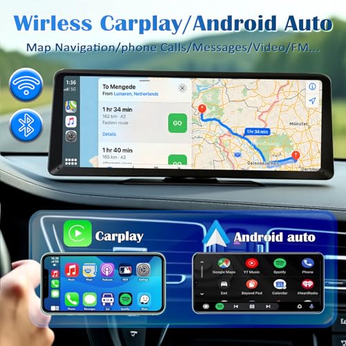 ¿Cansado de un coche desordenado? ¡Consigue una pantalla inteligente todo en uno! Pantalla táctil de 8.1 pulgadas Apple Carplay y el adaptador inalámbrico automático Android actualizan tu unidad sin la complejidad. Disfruta de un emparejamiento rápido, conexión estable y llamadas nítidas y transmisión de música. Una verdadera solución plug and play para un automóvil más inteligente con estéreo inalámbrico todo en uno CarPlay y Android Auto.