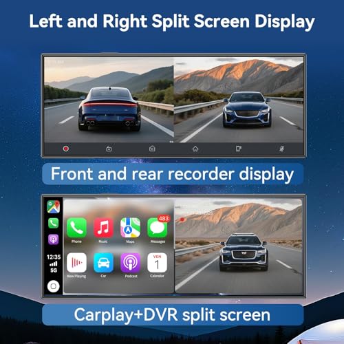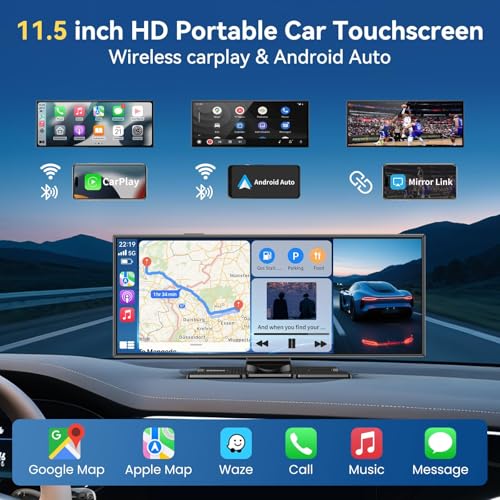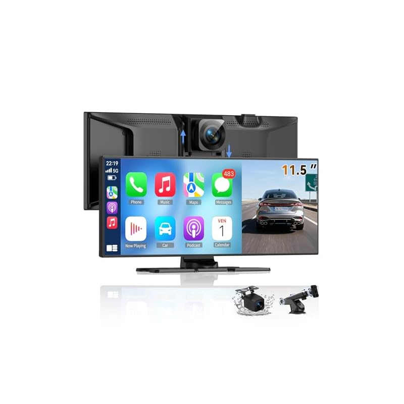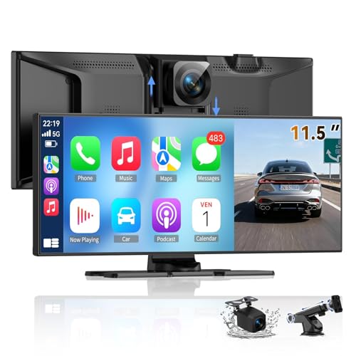 Pantalla Carplay inalámbrica más grande de 11.5 pulgadas para automóvil con Carplay y Android Auto, cámara de tablero 4K y cámara de respaldo de 1080P, control de voz con GPS/Mirror Link/Bluetooth/AUX