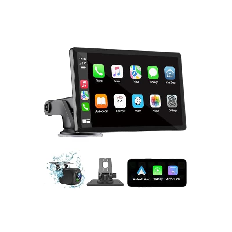 Especificaciones: Pantalla Carplay inalámbrica para coche de 7 pulgadas, HD, portátil, estéreo, pantalla táctil con Apple CarPlay y Android Auto con Mirror Link/cámara de respaldo/Bluetooth/navegación GPS/AUX para