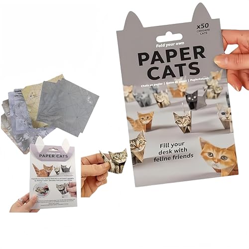 Paper Cats – Gatos de papel de origami para bricolaje, 50 hojas de papel de origami para doblar lindas figuras de gatos, gatos de papel, actividades divertidas de manualidades para adultos y niños
