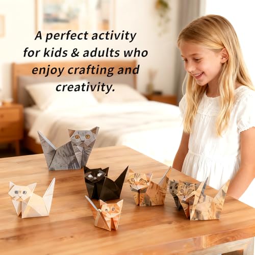 50 piezas de papel para gatos: incluye 50 hojas de papel de alta calidad, cada una con un diseño fácil de seguir, para que puedas crear toda una familia de gatos de papel para decorar tu espacio.