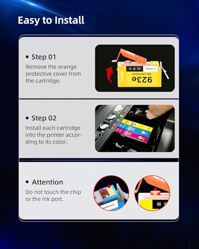 Aflautado rendimiento de página: nuestra tinta 923e ofrece un rendimiento de Aflautado rendimiento, ofreciendo hasta 1000 páginas para cartuchos de tinta negra HP 923 y hasta 800 páginas cada cartucho de tinta de 923 colores (basado en una cobertura del 5% de papel A4), fracasado para necesidades de impresión de Aflautado volumen