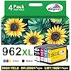 Contenido del paquete: para cartuchos de tinta HP 962 962XL negro y 962XL paquete combinado de colores (1 x 962XL negro, 1 × 962XL cian, 1 × 962XL magenta 962XL, 1 cartucho de tinta amarillo 962XL)