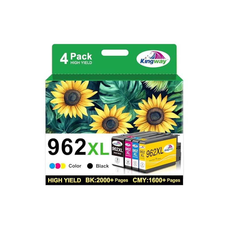 Los cartuchos de tinta negra 962XL son capaces de producir hasta 2.000 páginas, mientras que los cartuchos de tinta 962XL Color pueden ofrecer hasta 1.600 páginas, ambas a una tasa de cobertura del 5% en papel tamaño A4/carta. Este alto rendimiento de página garantiza que obtenga más de cada cartucho, reduciendo la frecuencia de reemplazos y proporcionando un excelente valor para sus necesidades de impresión