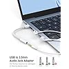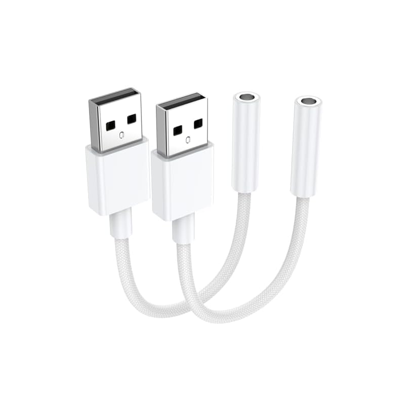 Especificaciones: Paquete de 2 adaptadores USB a conector de audio de 0.138 in, cable auxiliar de audio, tarjeta de sonido estéreo externa, USB a 0.138 in TRRS hembra auriculares para PS5 PS4 auriculares, PC, portátil