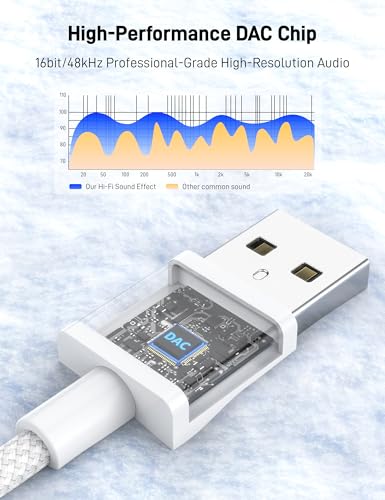 Tarjeta de sonido estéreo externa: ideal para conectar un auricular TRRS de 4 polos de 0.138 in, micrófono TRRS o altavoz a PC a través de interfaz USB. Soporta sonido estéreo escucha + hablar, funciones duales. Agregue fácilmente un puerto auxiliar TRRS de 0.138 in para sus dispositivos, o un reemplazo para un adaptador de audio de tarjeta de sonido USB fallido. Este adaptador USB A a auriculares adoptó un chip inteligente DAC avanzado, ofrece audio de alta definición, potente reducción de ruido, puede obtener un sonido de mayor fidelidad de él.