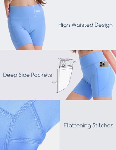 Paquete de 3 pantalones cortos de ciclismo para niñas de 4 pulgadas con bolsillos, pantalones cortos deportivos de cintura alta para correr, yoga, para niños y adolescentes