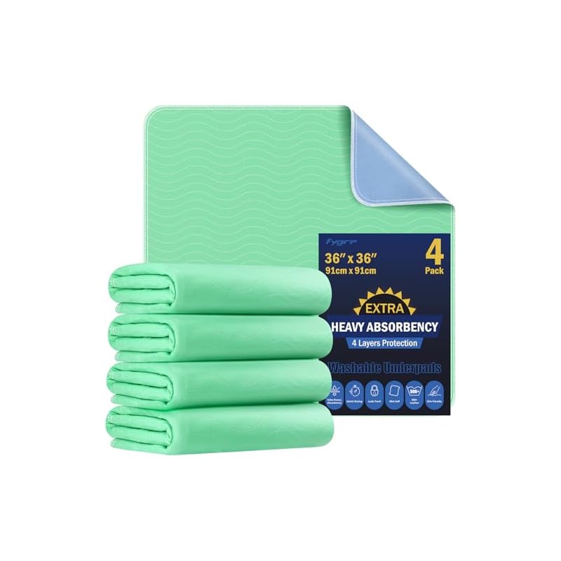 Paquete de 4 almohadillas de 36 x 36 pulgadas de absorción extra pesadas, lavables, impermeables, de secado rápido, para incontinencia de lactancia, reutilizables, lavables, almohadillas para