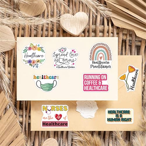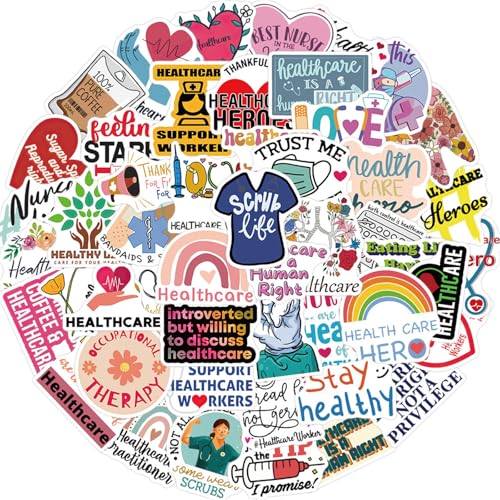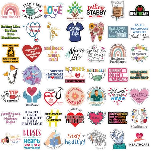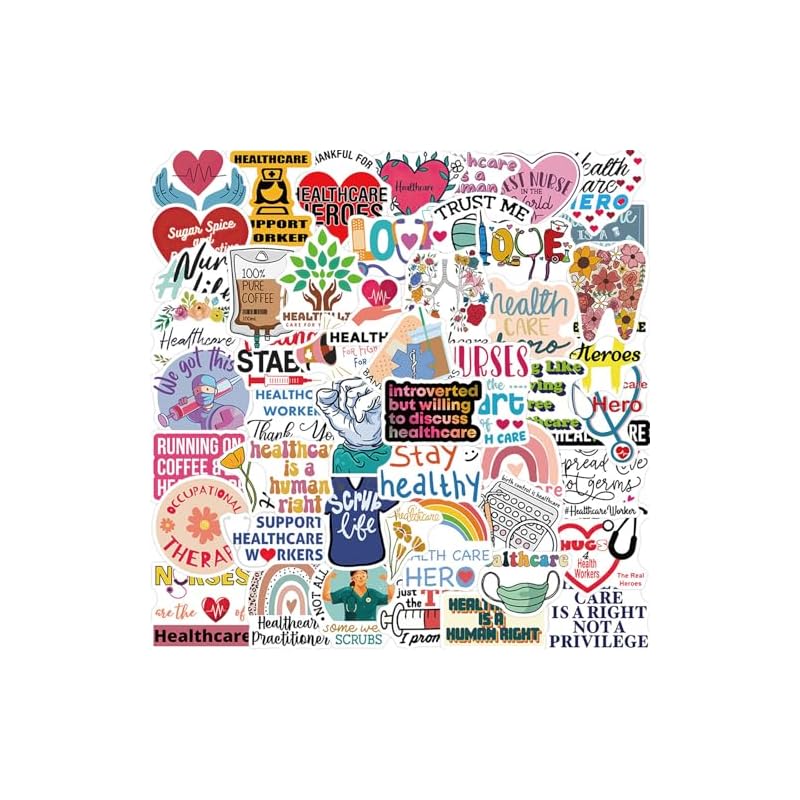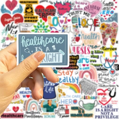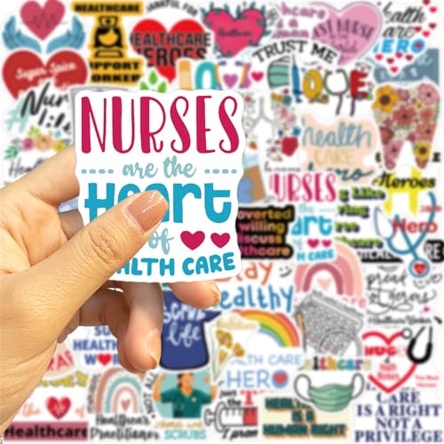 Paquete de 50 calcomanías para el cuidado de la salud para portátiles, botellas de agua, ofertas impermeables, decoración de héroes de enfermeras, calcomanías de héroes de cuidado de la salud para