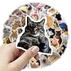 Especificaciones: Paquete de 50 calcomanías únicas de meme de gato, calcomanías de vinilo impermeables a prueba de rayos UV para botellas de agua, portátiles, equipaje y patineta, sin duplicados, calcomanías de gato
