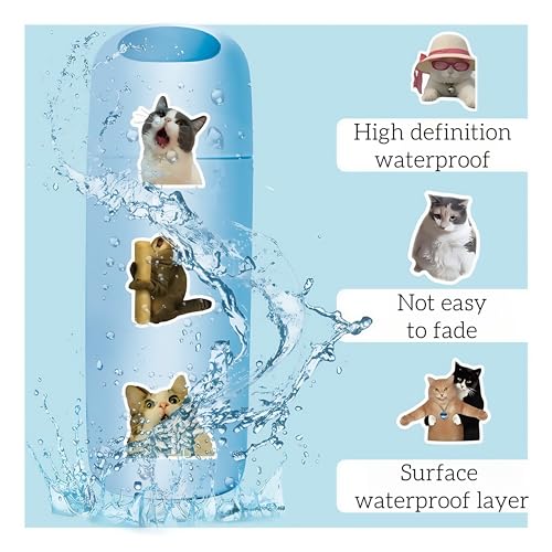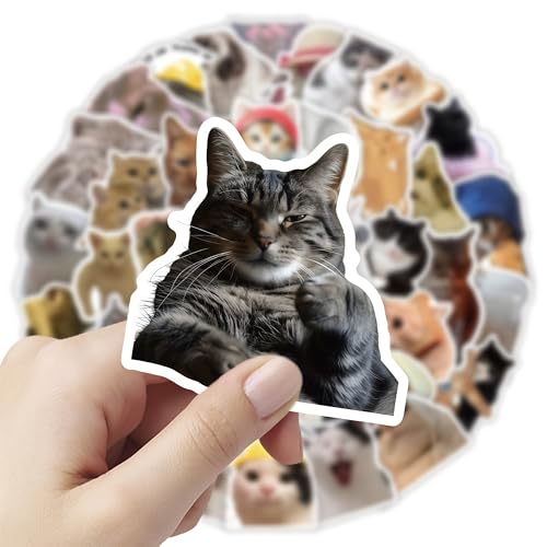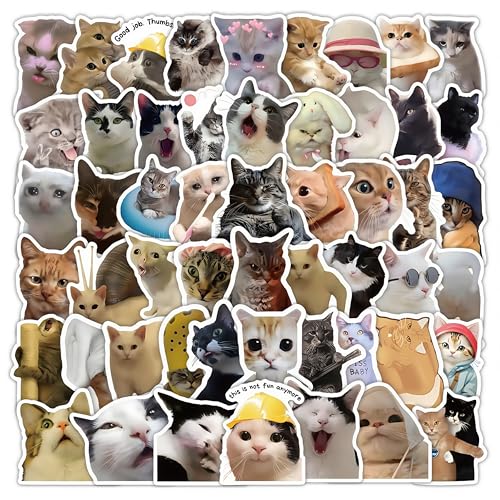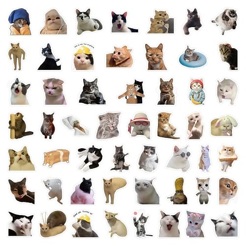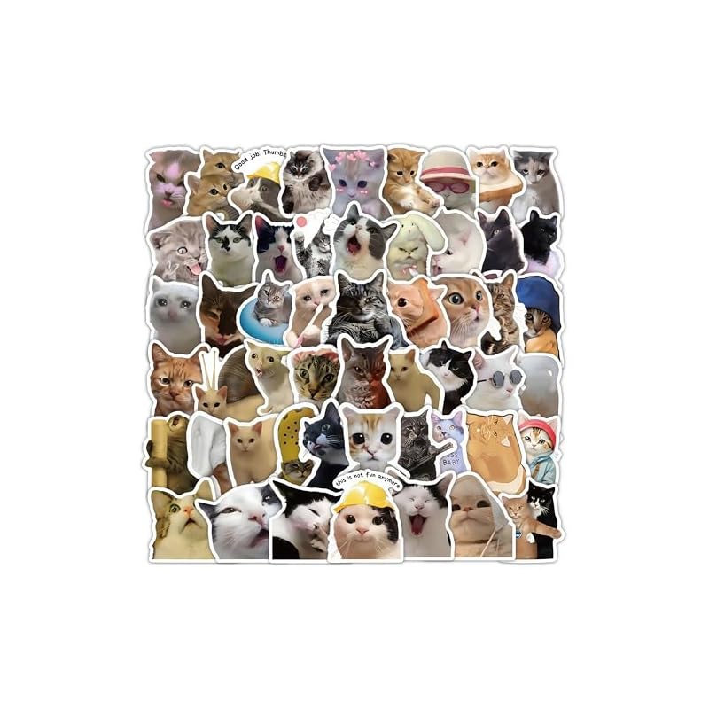 Paquete de 50 calcomanías únicas de meme de gato, calcomanías de vinilo impermeables a prueba de rayos UV para botellas de agua, portátiles, equipaje y patineta, sin duplicados, calcomanías de gato