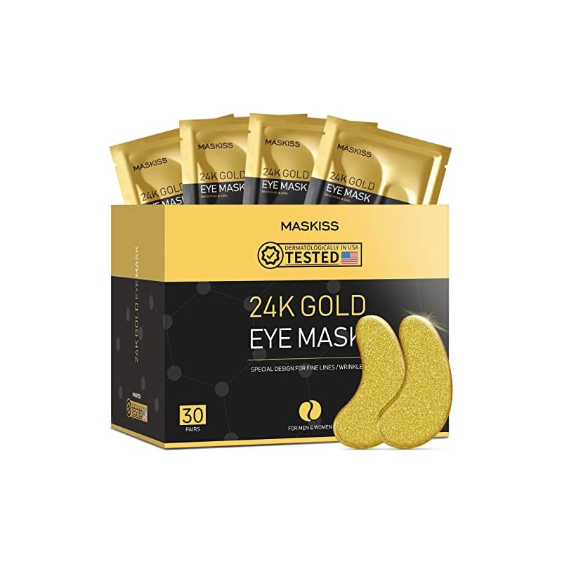 Efecto antienvejecimiento: los parches Maskiss debajo de los ojos con colágeno como componente antienvejecimiento evitan la formación de arrugas y el oro nano de 24 quilates con un efecto protector ayuda a prevenir que tu piel se hunda.