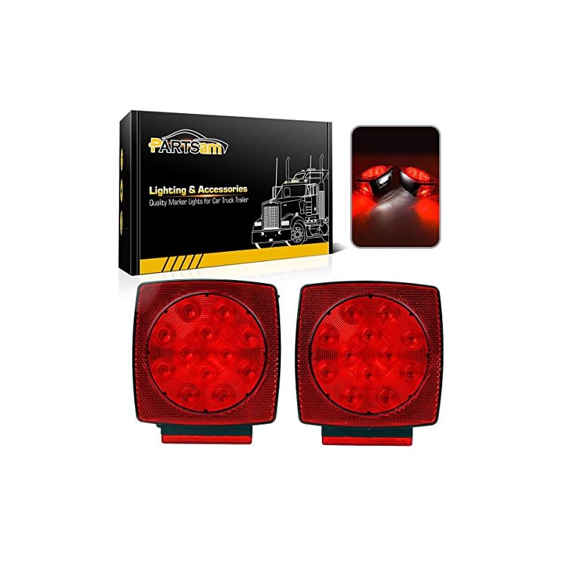 Especificaciones: Partsam Luz LED cuadrada impermeable de 12 V para remolque, luz LED roja para freno, licencia de freno, para remolques de menos de 80 pulgadas, barco, remolque, camión, caravana, motos de nieve, IP68, cumple con DOT