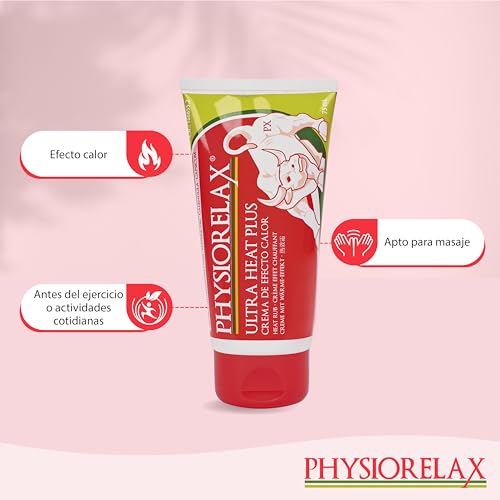 PHYSIORELAX ULTRA HEAT PLUS es una crema de masaje con efecto calor para músculos y ligamentos. En el lugar de aplicación del producto se eleva la temperatura y proporciona sensación de relajación y confort. Es un producto ideal para el precalentamiento muscular y para la tonificación de los músculos y las articulaciones después de un sobreesfuerzo físico, tanto en la práctica deportiva como en la vida cotidiana. También se recomienda en terapias de calor. Aplícala sobre la piel con un ligero masaje, en zonas localizadas. Idóneo para el uso en cervicales, lumbares, rodillas, codos, muñecas y tobillos. Ideal para deportes de contacto o extremos. El efecto calor puede verse potenciado al realizar una actividad física moderada o intensa.