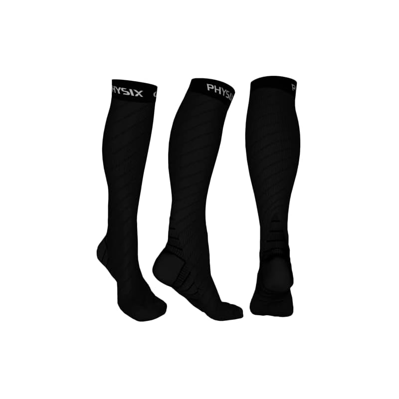 Mejora tu juego con los mejores calcetines de compresión de Physix Gear, diseñados para aquellos que exigen lo mejor en comodidad, apoyo y durabilidad. Nuestros calcetines de compresión son perfectos para mejorar la circulación sanguínea y minimizar la hinchazón, lo que los hace ideales para atletas, profesionales y cualquier persona que pase largas horas de pie. Estos calcetines de compresión están diseñados para mantenerte energizado y listo para enfrentar cualquier desafío, ya sea que estés en el trabajo, yendo al gimnasio o viajando. Hechos de materiales de alta calidad, nuestros calcetines para la presión arterial y calcetines de compresión para mujeres y hombres ofrecen una mezcla perfecta de comodidad y durabilidad. El diseño de compresión del calcetín garantiza un ajuste cómodo, proporcionando un apoyo específico a los arcos y talones, minimizando las molestias y evitando lesiones. Ya sea que estés buscando calcetines de compresión para mujeres u hombres, estos son los mejores calcetines de compresión para mantener tus piernas ligeras y revitalizadas. Los calcetines de compresión Physix Gear son más que solo calcetines: son una herramienta para mejorar tu calidad de vida. Disponibles en varios estilos y tamaños, estos calcetines son la elección perfecta para cualquier persona que necesite calcetines de compresión para mujeres y hombres. Con un enfoque en mejorar el flujo sanguíneo, nuestros calcetines de compresión ayudan a aliviar los síntomas de fatiga, hinchazón e incomodidad, lo que los convierte en los calcetines de compresión mejor calificados del mercado. Invierte en tu bienestar con nuestros calcetines de compresión de cobre para mujeres y hombres. Estos calcetines no solo son funcionales sino también elegantes, lo que los hace adecuados para cualquier ocasión. Ya sea que seas un atleta, una enfermera o alguien que busca mejorar su circulación, nuestros calcetines de compresión están diseñados para satisfacer tus necesidades. No te conformes con nada menos que lo mejor: elige los calcetines de compresión Physix Gear y experimenta la diferencia hoy mismo