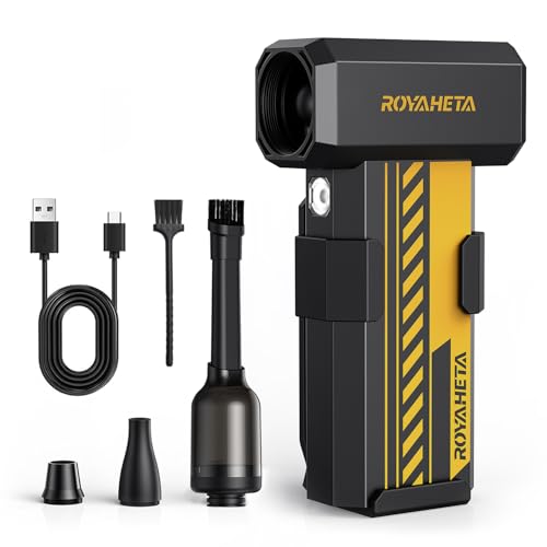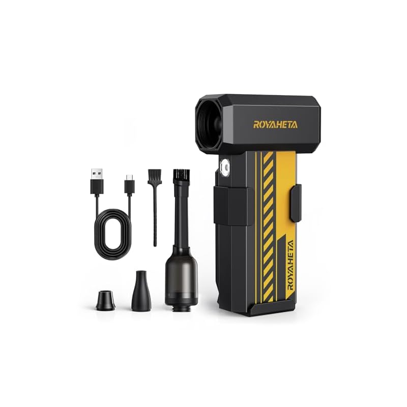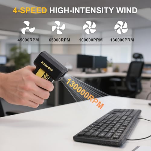 Ventilador Turbo de alto rendimiento: diseñado para jugadores, profesionales de TI y trabajadores de oficina, este plumero elimina fácilmente el polvo rebelde de teclados, ventiladores de computadora, automóviles y componentes electrónicos. Equipado con un motor sin escobillas de 130,000 RPM, ofrece velocidades de viento de hasta 170.6 ft/s, eliminando poderosamente los desechos ocultos. En comparación con las latas de aire tradicionales o las mini aspiradoras, este plumero de aire comprimido ofrece una experiencia de limpieza más profunda, rápida y eficiente con un rendimiento estable