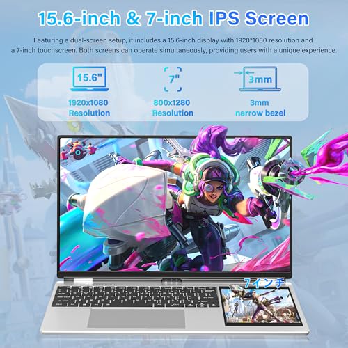 Pantalla dual: la computadora portátil de doble pantalla adopta un diseño único de pantalla dual, con una pantalla IPS Full HD de 15.6 pulgadas como pantalla principal y una resolución de 1920 x 1080 Full HD. Diseñado con bordes estrechos en todos los lados, la relación pantalla/cuerpo es del 93%. La pantalla secundaria es de 7 pulgadas 1200 × La pantalla táctil de 1920 permite a los usuarios ver videos y aprender simultáneamente, y este diseño le permite realizar otras tareas mientras ven videos en una pantalla pequeña.