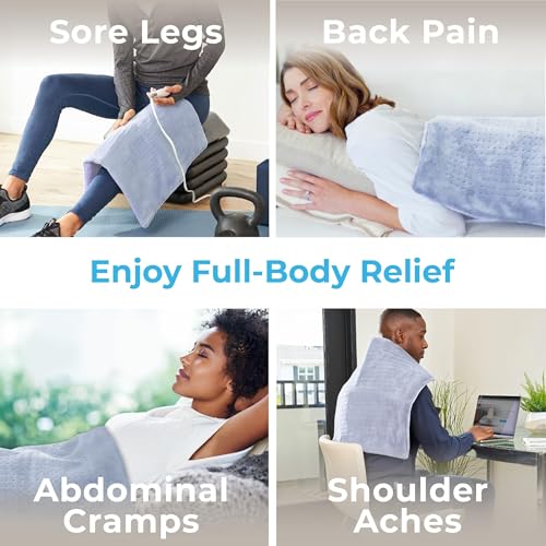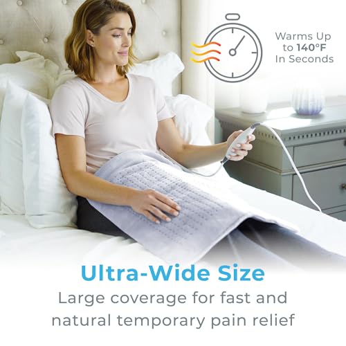 Pure Enrichment PureRelief – Almohadilla térmica de microfelpa ultra ancha, tamaño XXL de 20 x 24 pulgadas y 6 ajustes de calor para alivio temporal del dolor de cuello, hombros y espalda, opción de