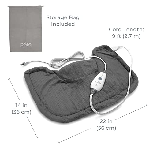 Especificaciones: PureRelief, Almohadilla de calor para cuello y hombros con tecnología de calentamiento rápido, cierre magnético y bolsa de almacenamiento conveniente, gris, 1