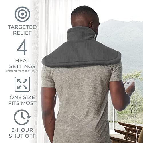 PureRelief, Almohadilla de calor para cuello y hombros con tecnología de calentamiento rápido, cierre magnético y bolsa de almacenamiento conveniente, gris, 1