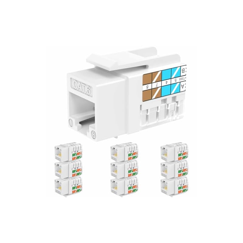 Especificaciones: Rapink RJ45 Keystone Jack Cat6 10G, Keystone Jacks UTP Paquete de 10 para placa de pared y panel de conexiones, Rj45 Keystone 90 grados Color blanco para cableado Cat6, Cat5e, Cat5