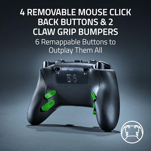 4 botones extraíbles para mouse y 2 paragolpes de agarre de garra: disfruta de la misma actuación ultra sensible que se encuentra en los mejores ratones de juego de Razer con 4 botones extraíbles integrados en las asas ergonómicas de goma del controlador, rematadas con 2 parachoques de agarre de garra para aún más control