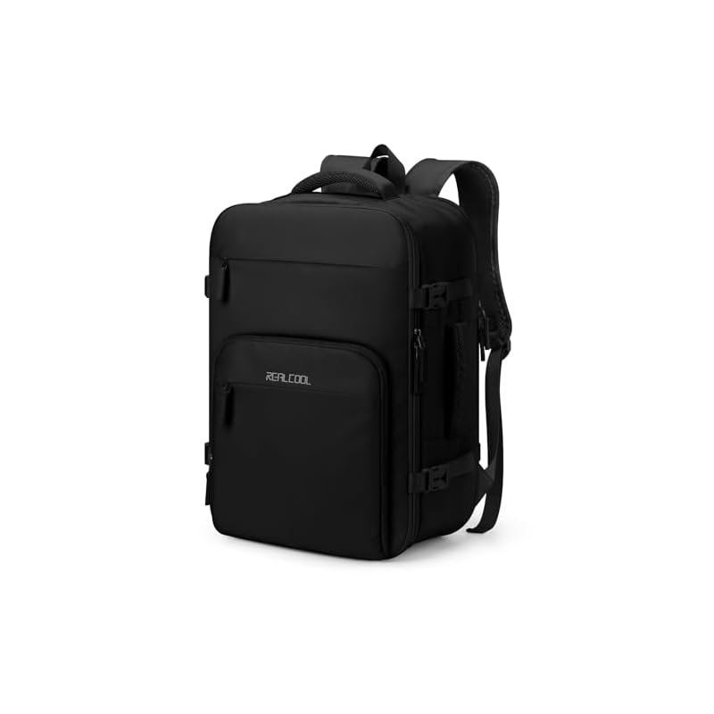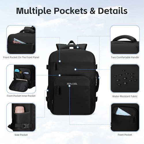 RealCool Mochila de viaje para mujeres y hombres, mochilas de transporte, bolsa para laptop de 15.6 pulgadas, aprobada por la TSA, para la escuela y la universidad (negro, 15.6 pulgadas)
