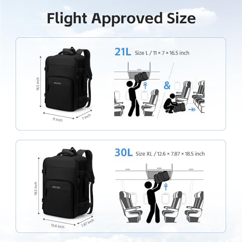 Esta mochila de mano mide tamaño: 13* 7.87* 19.68 «, peso: 1.98 libras. La mochila cumple con la mayoría de los requisitos de tamaño de equipaje de mano de aerolínea, se ajusta fácilmente sobre la cabeza o debajo del asiento para evitar tarifas. El diseño de apertura completa de 180 grados permite controles de seguridad rápidos y sin complicaciones.
