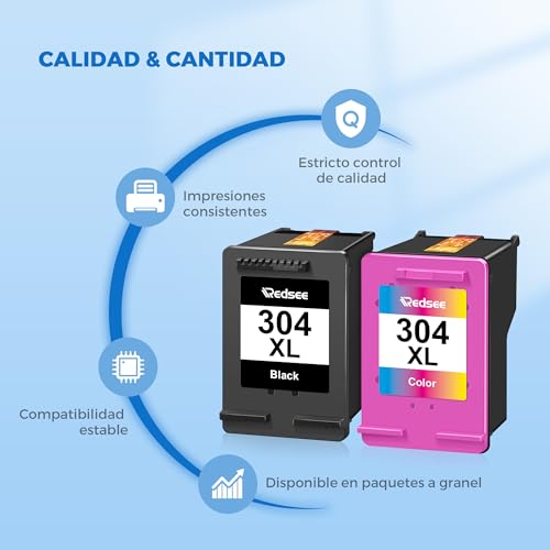 Especificaciones: Redsee 304XL Cartuchos de Tinta Remanufacturado para HP 304 XL Negro Compatible con 304XL para HP Envy 5010 5020 5030 5032 Deskjet 2630 2632 2633 3700 3720 3730 3750 3760 3762(Negro y Color,2-Pack)