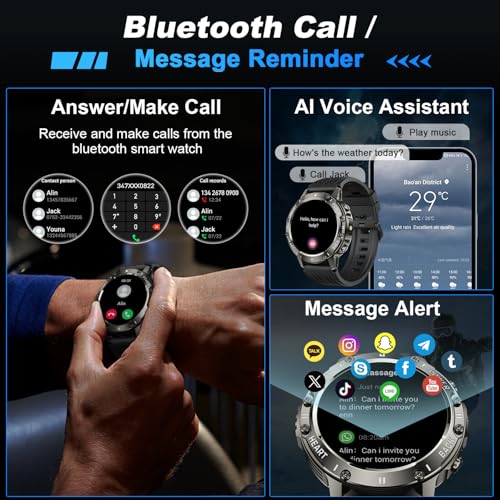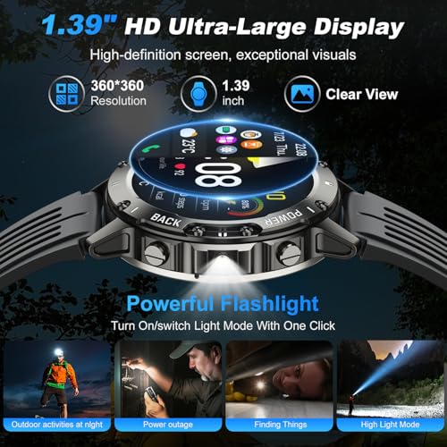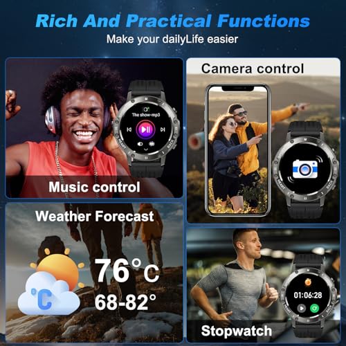 Reloj inteligente militar resistente para hombres: los relojes militares para hombres están hechos de subject material metálico especial, el reloj virtual para hombre ha sido sometido a rigurosas pruebas de grado militar, incluyendo temperatura extrema, baja presión y a prueba de polvo. El reloj inteligente para iPhone suitable está equipado con pantalla HD de 1.39 pulgadas que brinda un tacto cómodo y una excelente experiencia visible. Con más de 200 caras de reloj para elegir, el reloj inteligente para teléfonos Android también te permite personalizar el dial con tu foto favorita. talla unica
