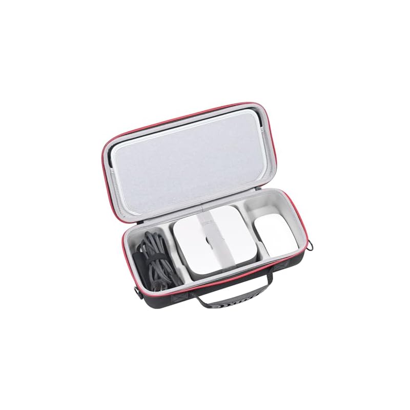 Diseño cuidadoso: la ranura central para Mac Mini M4/M4 Pro está equipada con una correa de fijación adhesiva para ayudar a proteger la máquina de sacudidas. También hay un divisor antigolpes en el medio de la funda para mantener tus artículos cómodamente mientras evita arañazos.