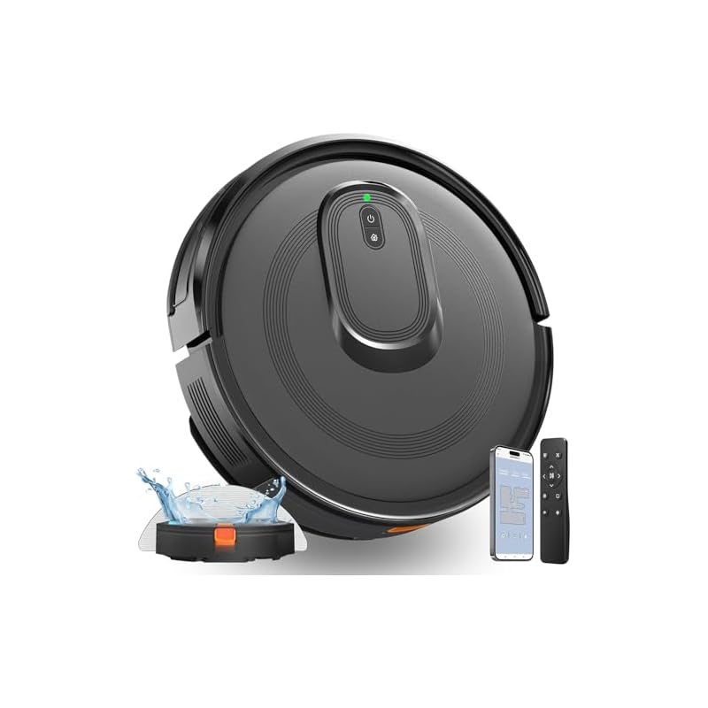 Especificaciones: Robot aspirador y trapeador combinado, robot aspirador 2 en 1, potente succión de 4200 Pa, limpieza multisuperficie, evitar obstáculos, carga automática, fácil de usar, control de aplicación y voz