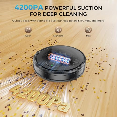 Robot aspirador y trapeador combinado, robot aspirador 2 en 1, potente succión de 4200 Pa, limpieza multisuperficie, evitar obstáculos, carga automática, fácil de usar, control de aplicación y voz, funciona con Alexa