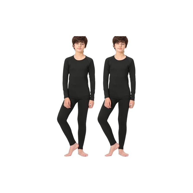 Especificaciones: Rolimaka Conjunto de 2 conjuntos de ropa interior térmica para niños y jóvenes, camisa de compresión con forro polar, leggings y pantalones para niños, capa base para clima frío