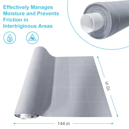 Especificaciones: Rollo de tela con infusión de plata de 10 x 144 pulgadas, transpirable y no adherente para protección del pliegue de la piel, forro de vendaje médico suave, corte personalizado