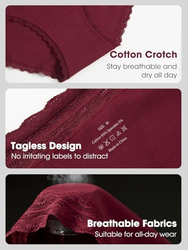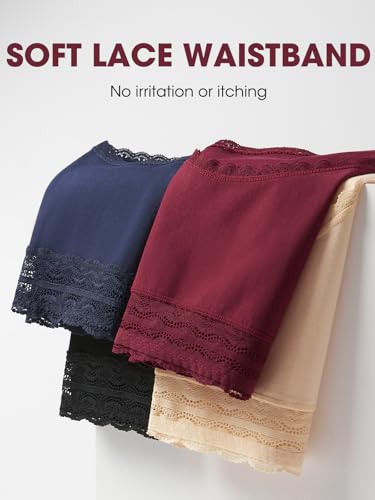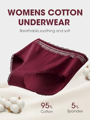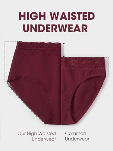 Ropa interior de algodón para mujer, calzones de cintura alta, cintura de encaje suave, transpirable, cobertura completa, paquete de 4 unidades