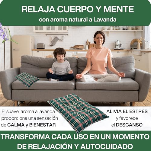 [Aromaterapia – Efecto relajante]: El sutil aroma a lavanda, que se libera gradualmente durante el uso del cojin de semillas, contribuye a estimular los sentidos y crear un ambiente de calma y tranquilidad,