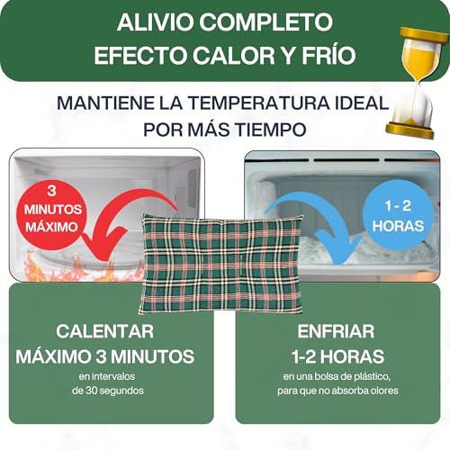 Uso frío o caliente: Además de su función como bolsa de calor, también puedes utilizar este saco como compresa fría o bolsas de hielo para lesiones. Solo tienes que colocarlo en el congelador durante al menos 1 hora, y tendrás una herramienta eficaz para reducir inflamaciones, aliviar dolores de cabeza o aplicar en lesiones para reducir hinchazones.