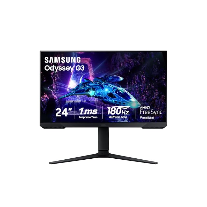 Samsung Monitor para juegos Odyssey G3 (G30D) de 24 pulgadas serie FHD, 1 ms, 180 Hz, AMD FreeSync, soporte ajustable, ecualizador negro, punto de objetivo virtual, modo protector de ojos, sin