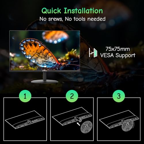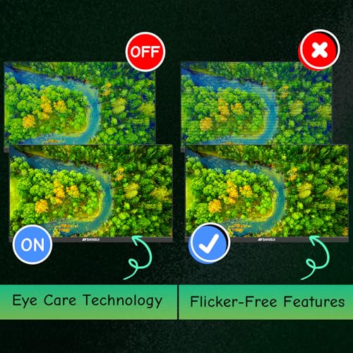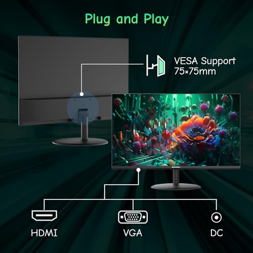 Especificaciones: SANSUI Monitor de computadora 24 pulgadas Cuidado de los ojos Pantalla 1080P HDMI, puertos VGA con ángulo de visión de 178°, sin marco, inclinación/VESA compatible para oficina y hogar
