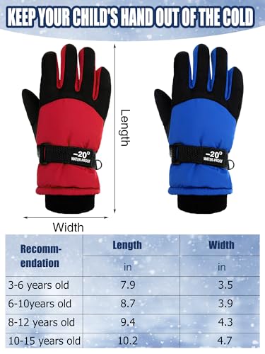 SATINIOR 2 Pairs Kids Waterproof Winter Snow Gloves Ski Gloves for Boy Girl Outdoor Warm Thickening Snowboar