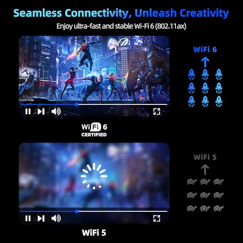 WIFI6 y puertos: la tecnología Wi-Fi 6 y Bluetooth 5.2 proporcionan conectividad inalámbrica ultrarrápida, que ofrecen una fuerte señal inalámbrica. Mantente conectado con tecnología avanzada, incluyendo HDMI*1, USB 3.2* 3, RJ45 Ethernet* 1, conector para auriculares, 1 ranura para tarjeta TF, 2 ranuras SSD, tipo C* 1 (completo), el puerto tipo C se utiliza para cargar portátiles, conectar periféricos básicos como monitores externos y transferencia de datos rápida, y se carga mejor con un adaptador de 36 W+